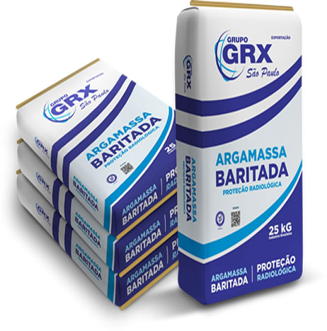 A argamassa baritada GRXSP (barita) para sala de tomografia e raio x, também conhecida como massa para raio-x, é fabricada pela GRX São Paulo em misturadores verticais com sistema de roscas helicoidais que garantem uma mistura 100 % uniforme e homogênea. Massa baritada embalada automaticamente em sacos de papel multifoliados e valvulados atendendo assim todos as exigências do mercado interno e externo no que diz respeito ao transporte e ao descarte da embalagem após o uso, sem trazer riscos ao meio ambiente.